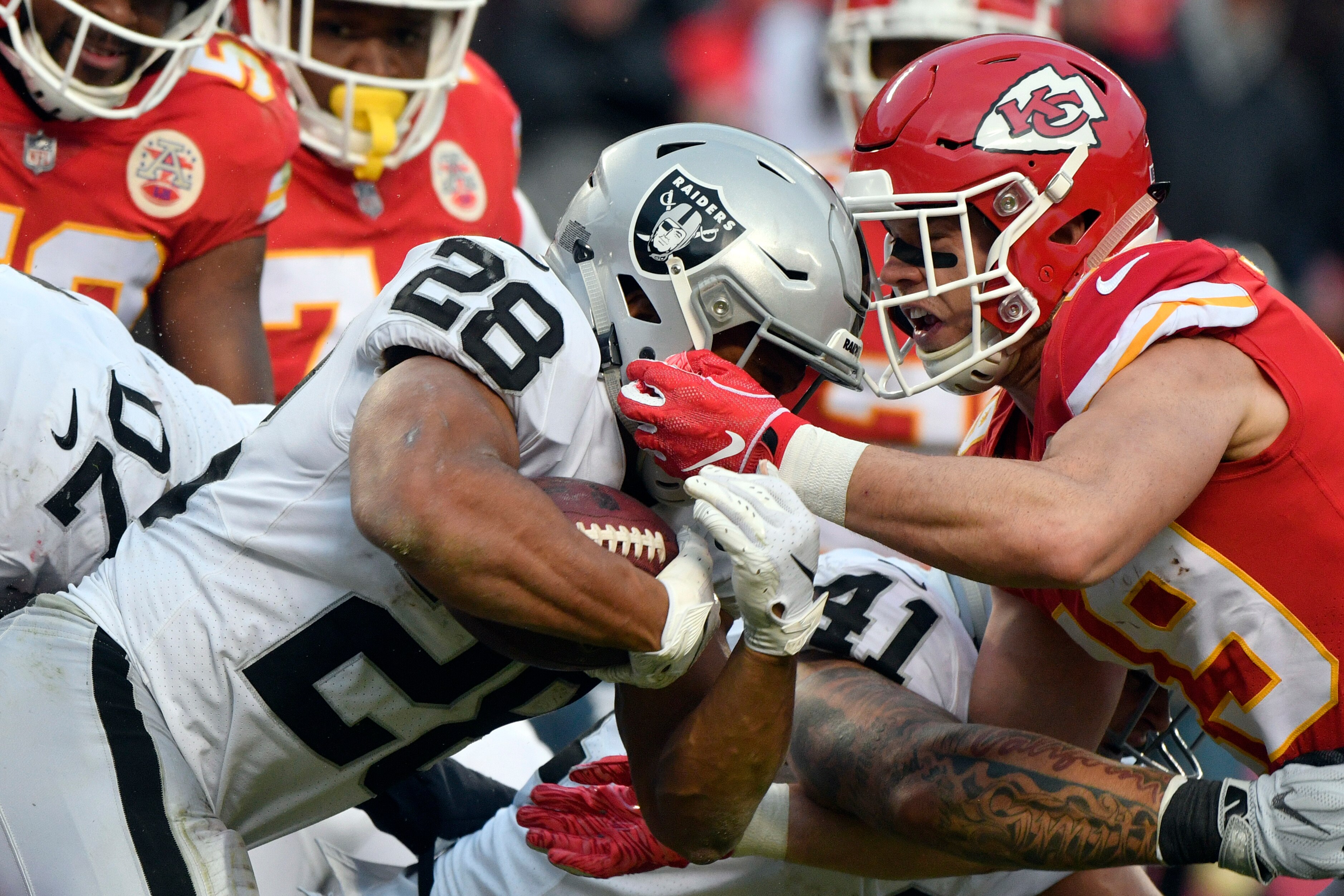 Oakland Raiders head coach Jon Gruden stuck with a pair of older running backs in 2018. Marshawn Lynch, 32, ended the season on injured reserve. Doug Martin, who turns 30 this month, proved to be a serviceable starter, rushing for 723 yards and 4.2 yards per carry.